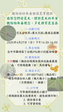 瞭解魏伯伯對無毒農業的堅持,他用心栽種的每一顆花生,都是為了讓