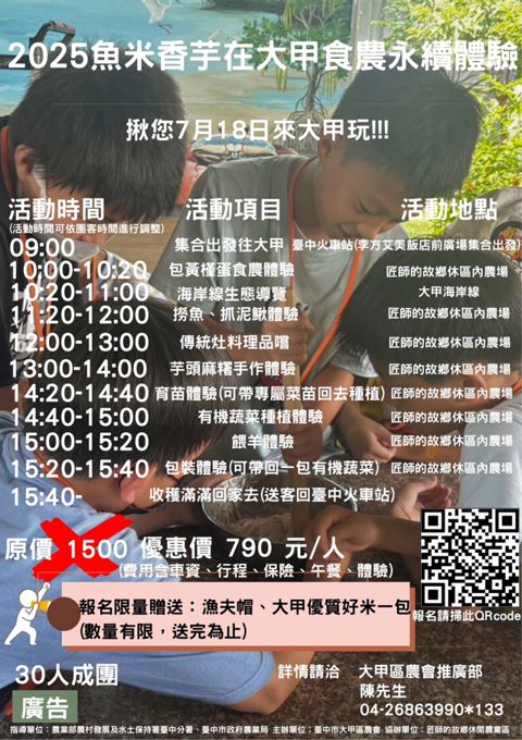 ※活動細節請洽主辦單位,農業易遊網僅供資料蒐集與整理;活動可能因颱風、豪雨特報等臨時狀況延期或取消。