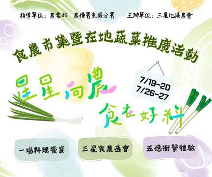 透過食農體驗與互動行銷,讓民眾瞭解在地農業價值、認識食物來源,支持宜蘭三星優質農產,誠摯邀請大家一同體驗最「食」在的三星魅力,享受豐收的快樂時光。