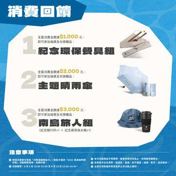 ⧫ 消費滿額|贈環保餐具、晴雨傘、隨行杯、兩用漁夫帽等(甚至還能抽大獎.ᐟ)