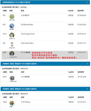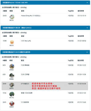 經核對後有兩名得獎者不符合抽獎規定,視同放棄中獎資格,另行重抽補位: