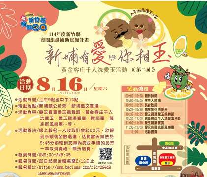新埔九芎湖商圈『新埔有「愛」·與你相「玉」-黃金客庄千人洗愛玉活動,舉辦地點在新埔鎮公所旁的藝文廣場,