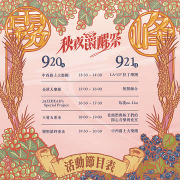 全新的面貌、更加豐富的爵士陣容,邀約所有的夥伴共同遨遊霧峰,洞見民主城廊的光陰時刻,秋夜爵醒祭今年結合立法院民主議政園區,匯聚霧峰人文觀光,綻放音樂藝術與中苗地酒產銷的盛大派對.ᐟ.ᐟ