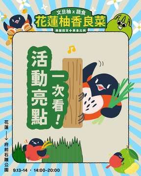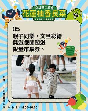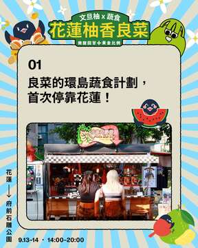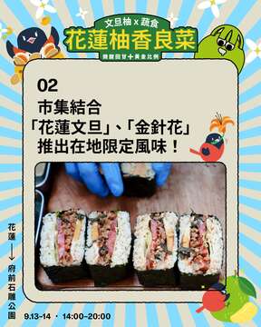 花蓮柚香良菜市集將於 9/13(六)–9/14(日)14:00–20:00 在 府前石雕公園 舉行,現正開放報名!