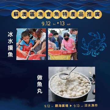 全國模範漁民頒獎典禮同步轉播,更有 漁樂鱻選市集、漁會四健成果展 & 家政手工藝品展售、食魚教育及魚食品鱻、漁樂技藝趣味競賽、漁樂仲夏音樂會及漁業體驗DIY。現場還可以體驗 蘇澳區漁會的做魚丸與冰水摸魚活動,以及活動兩日的16:00–19:00會有巡港的騎警隊,親切停下與民眾合影,感受漁港熱鬧氛圍,一同體會「城市與海洋共生」的美麗篇章✨。