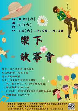 活動時間:10/25(六)、11/1(六)、11/8(六) 下午17:00~19:30