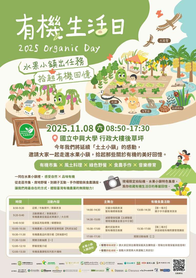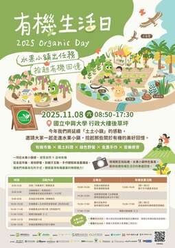 探索有機、蒐集有機、挑戰有機、解鎖有機——透過市集走逛、草地野餐、主題闖關、食農講座,一起用最輕鬆的方式,體驗臺灣有機農業的多元魅力。