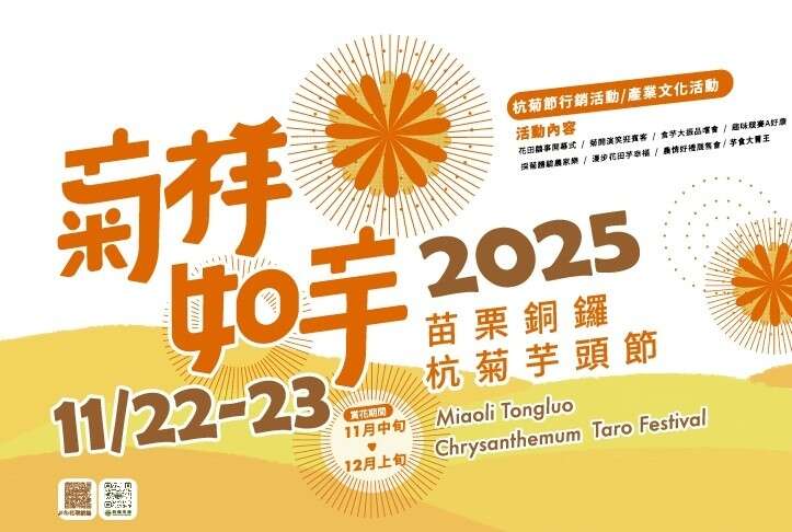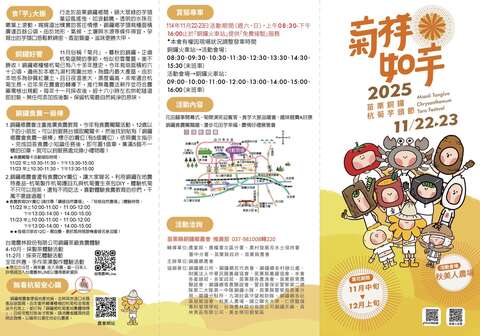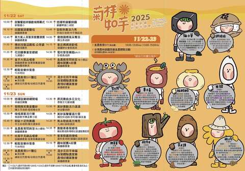 花田囍事開幕式、菊開演笑迎賓客、食芋大振品嚐會、趣味競賽A好康、銅鑼食農闖關趣、漫步花田芋幸福、農情好禮展售會