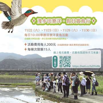 10:00舉辦田寮洋賞鳥活動 福隆火車站步行至田寮洋賞鳥
