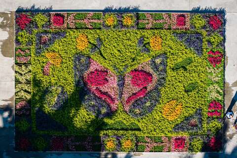 今年首次展出由社區與花藝師合作創作的地景花毯,