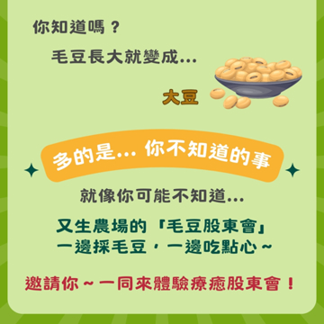 每股約可採收 20台斤 的毛豆(建議人數5-7人/股)