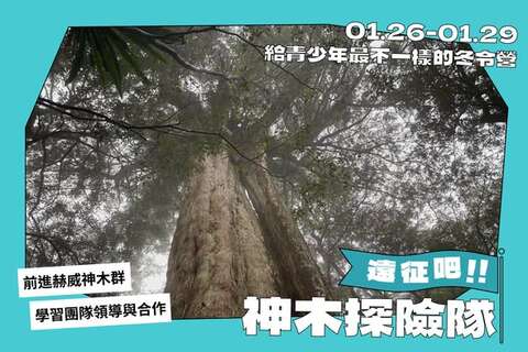 東眼山自然教育中心特別針對國中一年級至高中三年級的青少年,組建一支為期四天三夜的「神木探險隊」,邀請學員走進山林,在真實的自然環境中學習、成長與探索,親身經歷獨一無二的森林冒險!