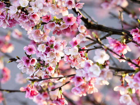 有寒櫻、吉野櫻、八重櫻等,各式品種隨時令綻放。
