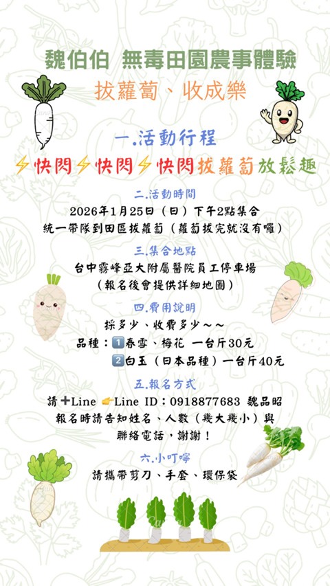 魏伯伯無毒田園農事體驗|拔蘿蔔、收成樂