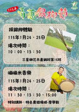 採銀柳體驗: 透過專業導覽,深入了解銀柳的生長奧秘,並親手採摘象徵喜氣的銀柳。俗諺說「厝內插銀柳,賺錢用牛拉」,讓您把好運與財富親手帶回家!