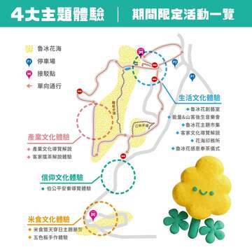 活動特別結合客家傳統節慶,包括迎古董、接財神與天穿日等重要民俗慶典,傳遞休養生息與永續迎新的文化精神。民眾可在金黃花海與璀璨燈飾交織的氛圍中,深度感受客家節慶的獨特魅力與文化底蘊。