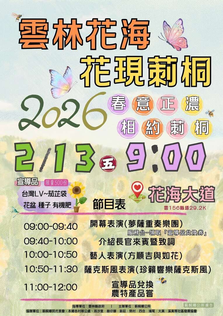 開幕日115/02/13 莿桐花海大道(雲156縣道29.2K)
