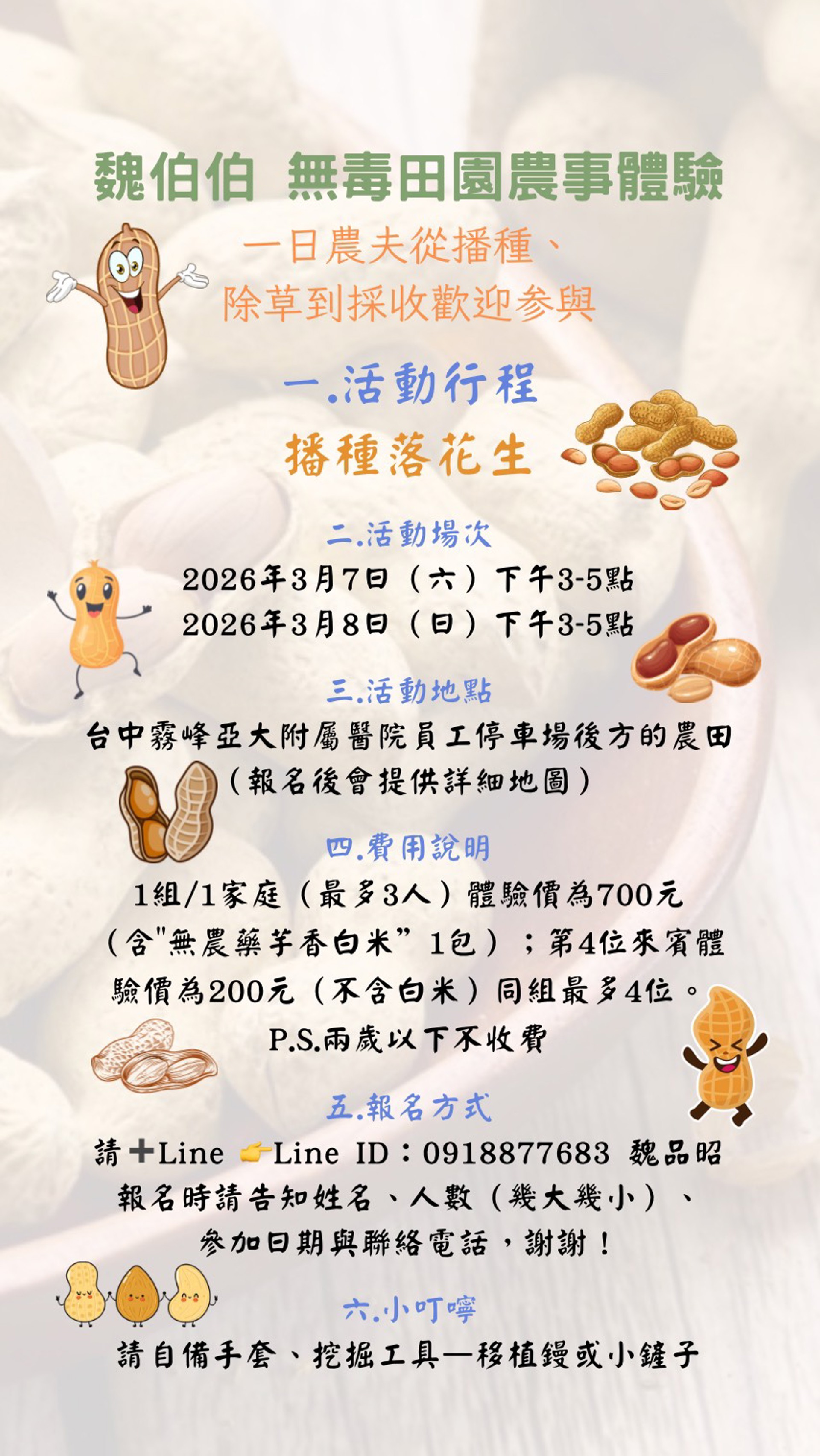 快來報名「花生的魔法旅程,一日農夫體驗」吧!