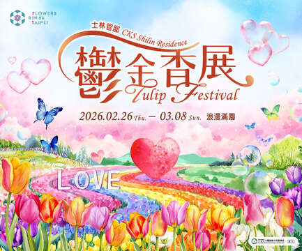 2026 士林官邸鬱金香展以「浪漫滿園」為主題,結合浪漫意象與園藝技術,透過繽紛盛放的鬱金香花海,營造春日戀愛氛圍。展區以情感旅程為主軸,從初見時的悸動、心意傳遞,到相伴同行的幸福想像,打造宛如遊走於夢幻花園般的賞花體驗。漫步其中,彷彿置身浪漫約會場景,在滿園花海的包圍下,沉浸式感受愛情的溫度與春天的美好。
