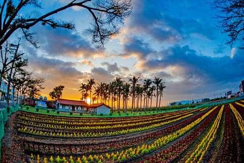 今年花田除高聳亮麗的蜀葵花外,更新增青葙,並搭配火焰雞冠花、粉萼鼠尾草、紅藜、油菜、萬壽菊與百日草等,園區面積約2.6公頃,花期預計長達一個半月,3至5月臺南賞花亮點就在學甲。