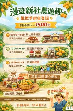 這個春天,一起漫遊新社、品味枇杷香甜、體驗農村生活的美好吧! 名額有限,快揪親朋好友一起報名參加