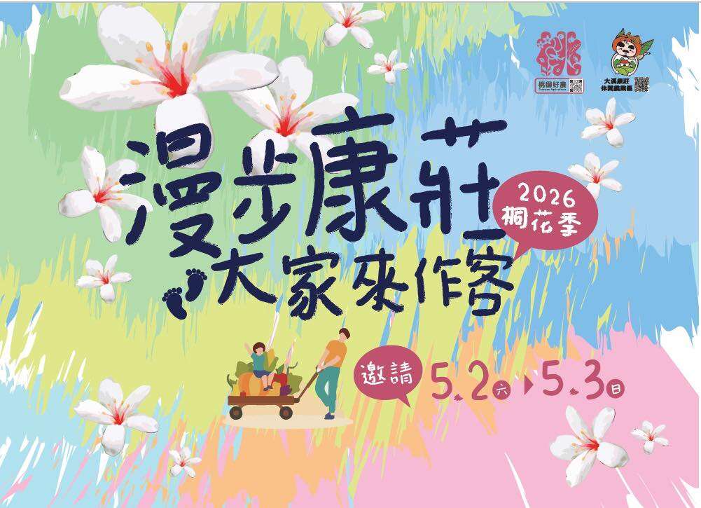 朋友們~「2026 康莊桐花季」正式揭開序幕囉!今年的主題是「漫步康莊~大家來作客」,誠摯邀請您在 5/2-5/3 走進大溪康莊休閒農業區。這不只是一場市集,更是我們在地準備整年的熱情款待。從療癒的手作美學到充滿芬多精的生態巡禮,每一份行程都注入了對土地的愛。快把這兩天留給康莊,讓紛飛的五月雪,帶領您體驗最純粹的農村人情味。大家,準備好來康莊作客了嗎?
