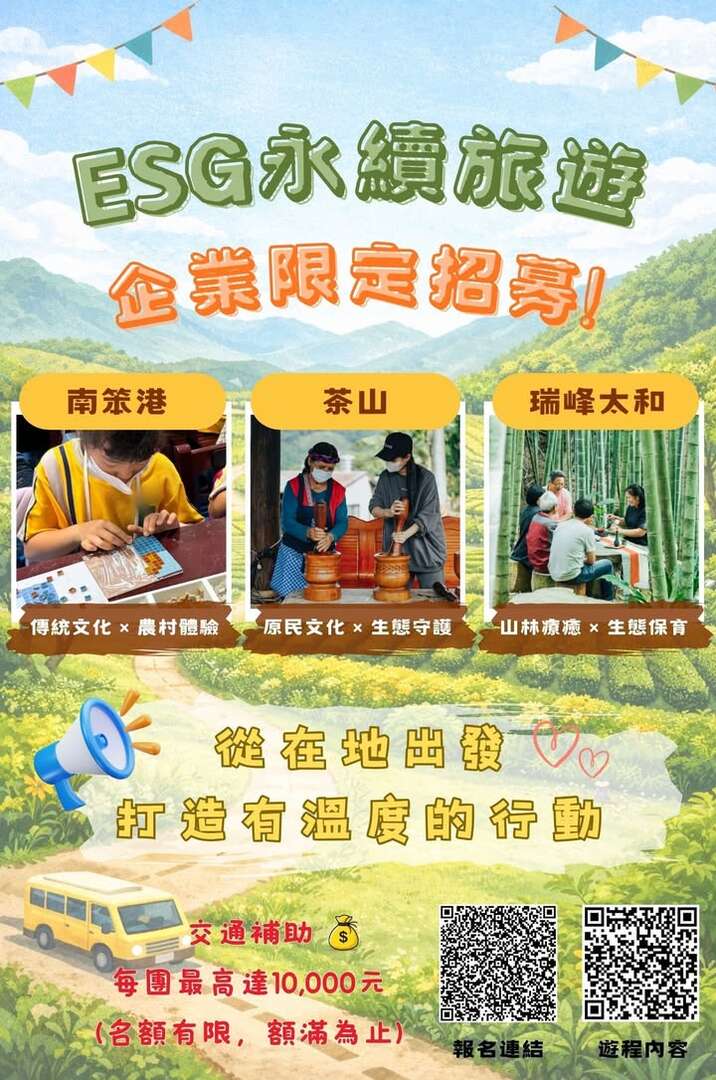 交通費用:可提供交通補助,最高補助新臺幣10,000元/每團(名額有限,額滿為止)