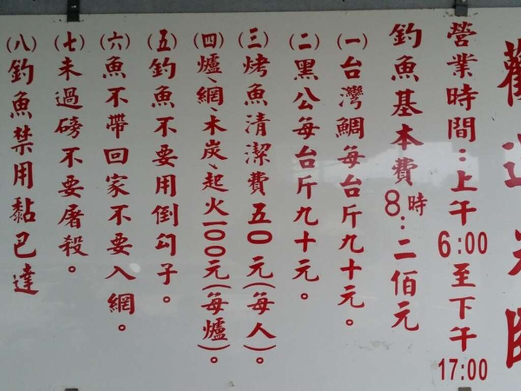 註1:釣客請自備釣竿/釣具/魚餌等相關設備(下頭城交流道附近之釣具行可供購買)。
