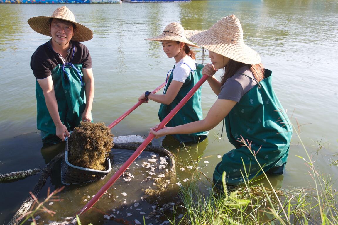 場內體驗划船、摸文蛤、釣魚、烤蚵
