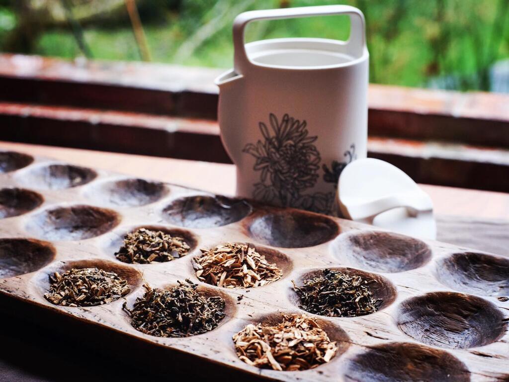精心調配的「艾˙茶湯包」-艾草溫暖、聚昇陽氣,為身體堆砌厚實的能量;湖鹽清潔、過濾雜訊,讓心裡有寧靜的氣場。浸入單體浴缸的茶湯之食。身心療癒隨即開始。