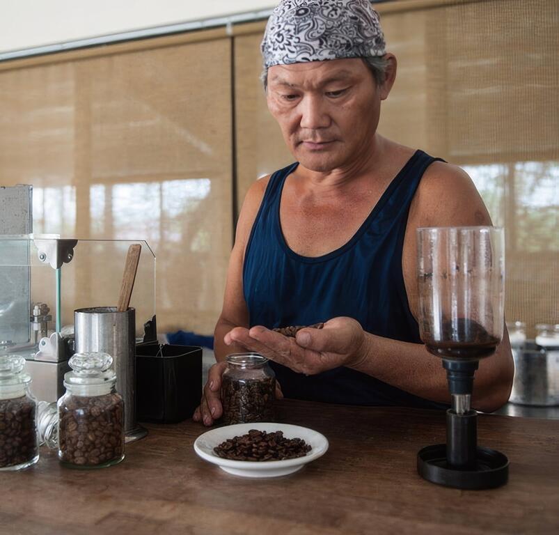 張耀境先生回來屏東訪親時,發現大武山上咖啡豆掉落滿地, 卻無人採收,心想著家鄉如此棒的農特產品,卻沒有被人發現,怎麼可以這麼可惜呢? 懷著這一份分享的心情,開啟了他對於咖啡的認識與堅持,若您是咖啡行家,請您一定要來金石咖啡坐坐,用您挑剔的味蕾好好品嘗海拔700 公尺以上種植所烘焙出來的金石咖啡;若您是剛開始想研究咖啡,那更一定要來,在這裡,金石咖啡為您細數家珍,還有一群熱愛咖啡的玩家與您聊天共享,這裡,不僅是咖啡饗堂,最珍貴的,是人與人之間暢所欲言的開放與熱情。