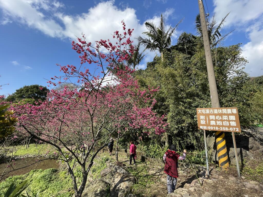 依山傍水的『大屯溪古道休閒農場』位於陽明山國家公園內,一年四季展現不同風情,從每年11月到隔年5月,緋寒櫻、寒櫻(小富士)、大島櫻、昭和櫻(富士)、吉野櫻、墨染櫻、普賢象櫻、菊櫻、御衣黃櫻等九種櫻花輪番綻放,亦可見到杜鵑、台灣百合、愛情花、金花石蒜、金針花等花卉,到了秋季,上百株楓香、青楓染紅了山頭,與湛藍的天空相互輝映。潺潺的大屯溪更是夏天避暑的好去處。