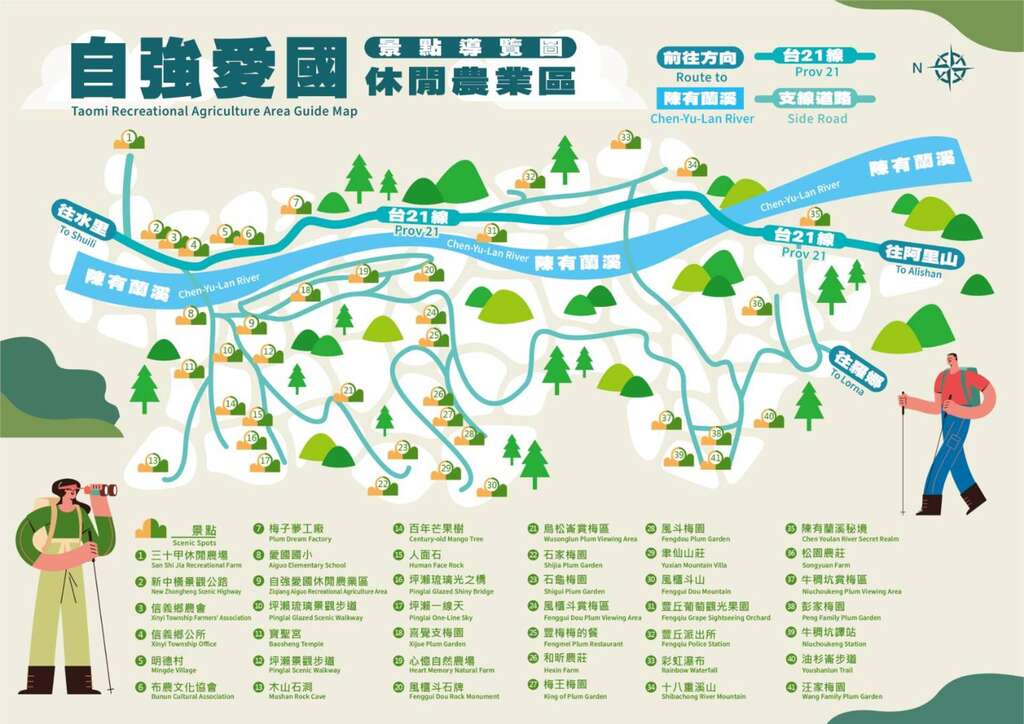 本休區面積廣達2000餘公頃,幅員遼闊,區內主要特產就是青梅及青梅加工品,崁腳寮生產的葡萄的品質也十分受到肯定,是一處典型的農村聚落。農業生產之外,還有烏松崙森林休閒區、牛稠坑景觀生態區及坪瀨溪流生態區等,境內包括坪瀨溪、刺蔥溪與陳有蘭溪等溪流,一年四季均溪水潺潺,孕育豐富生態資源,提供遊客賞景、採果、森林悠遊及生態探索的多樣樂趣。鄰近東埔溫泉區、八通關古道,玉山國家公園轄區就在附近,周邊旅遊資源十分豐富,非常適合結合休閒農業與觀光遊憩與規劃完整的套裝旅遊行程,充分欣賞自然景觀之美與人文產業體驗。
