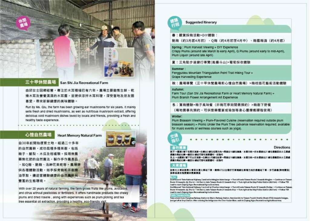 冬:賞梅體驗>梅子風味餐(非梅花季期間需預約)>梅樹下野餐(場地需事先預約,可供音樂饗宴或瑜伽等身心靈療癒課程使用)