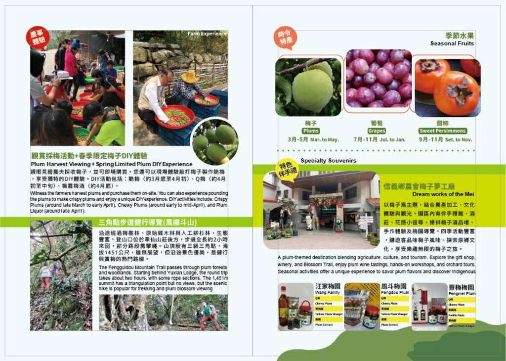 春:觀賞採梅活動>DIY體驗:脆梅(約3月底4月初)、Q梅(約4月初至4月中)、梅露梅酒(約4月底)