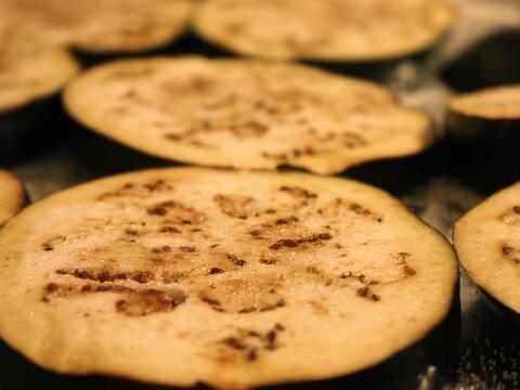 在常見的料理「魚香茄子」、「茄腸煲」中,茄子都扮演著不可或缺的重要角色,即使單純切片煎烤也別有一番風味。已先行過油準備的茄子,在燈光的映照下更顯賞心悅目,加上撲鼻而來的香氣,令人忍不住食指大動。