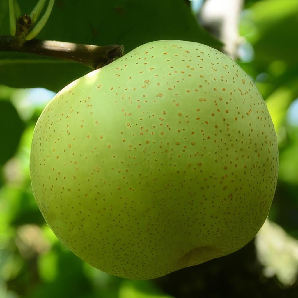外表看起來綠綠的,帶一點點黃黃的銹斑,咬在嘴裡的果肉細緻又有果香,很有可能是蜜雪梨。因為外皮像蘋果,所以又俗稱為蘋果梨或是綠皮梨,品質好可惜保存期不長,最佳賞味期只有兩週而已。