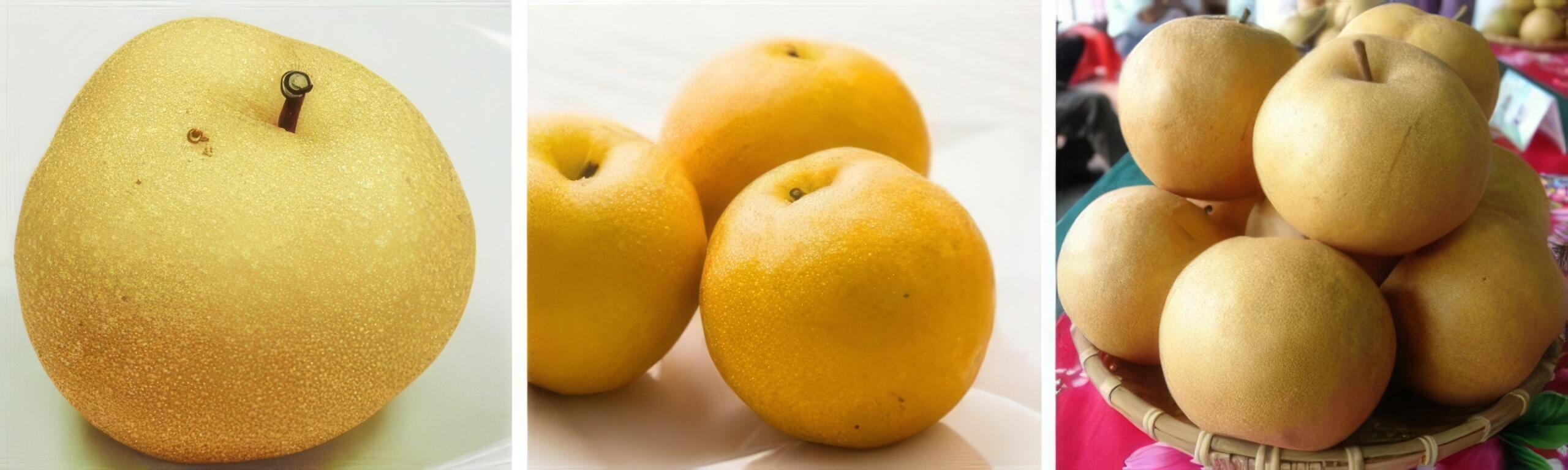 ▲由左至右分別為豐水梨、新興梨、幸水梨