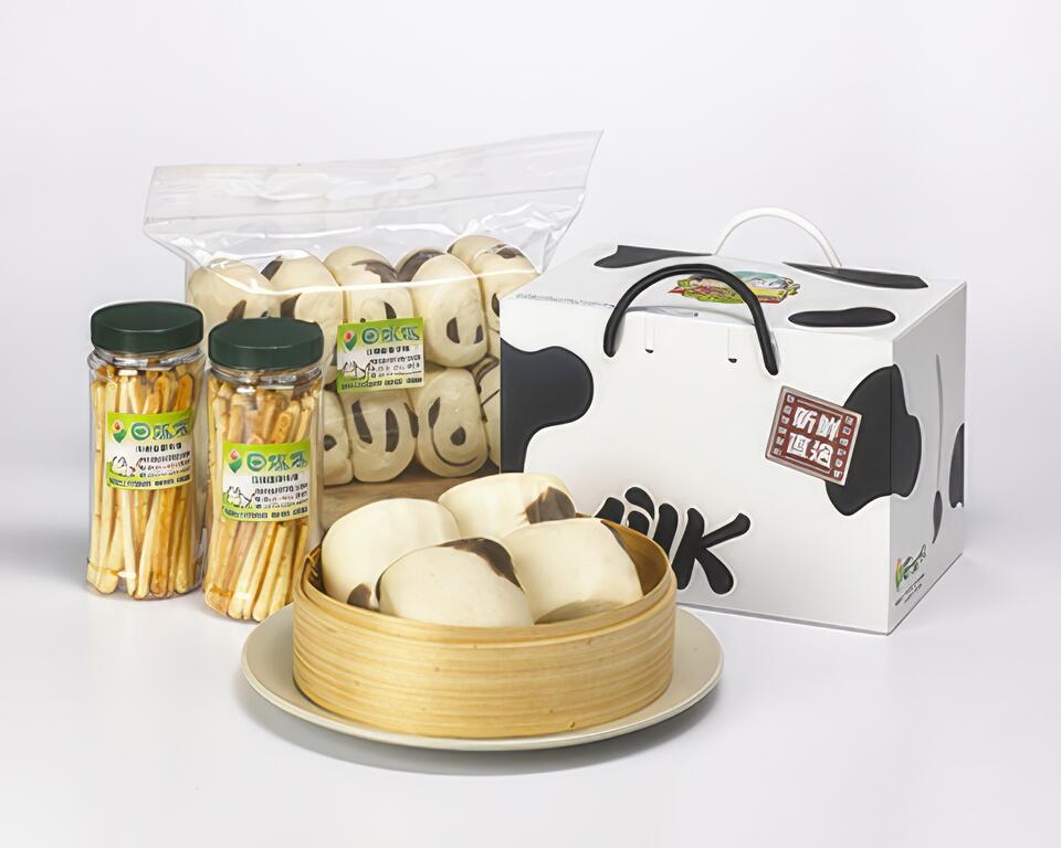 鮮奶起司棒始以鮮奶麵粉跟帕瑪氏起司粉做成,吃起來脆脆的有濃濃的奶香起司味。乳牛斑點饅頭以純鮮奶加入麵粉內製作,過程中無任何添加物,斑點以竹炭可可粉製成來點綴,製作出可愛的乳牛斑點饅頭。