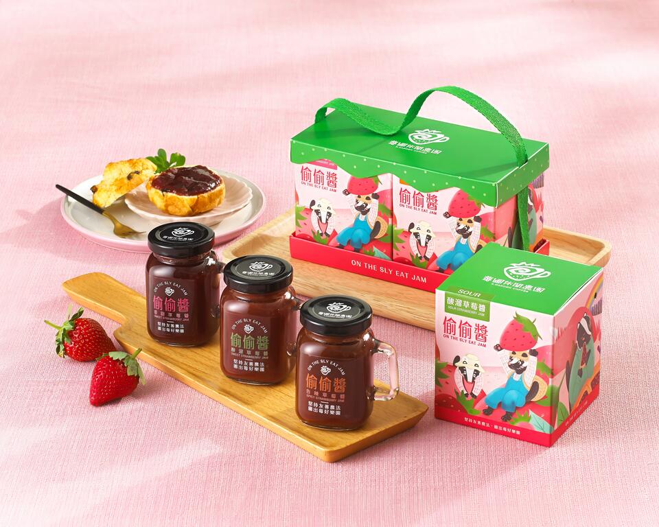 採用安心草莓製作出全家都適合的草莓醬;有小孩愛的減糖甜草莓醬、媽媽愛的低糖酸草莓醬、爸爸愛的驚艷辣草莓醬;滿足全家需求。堅持無人工添加物、無添加果膠、無香精、無防腐劑、符合380項農藥檢查,生菌檢驗合格。美味之外更堅持安心!