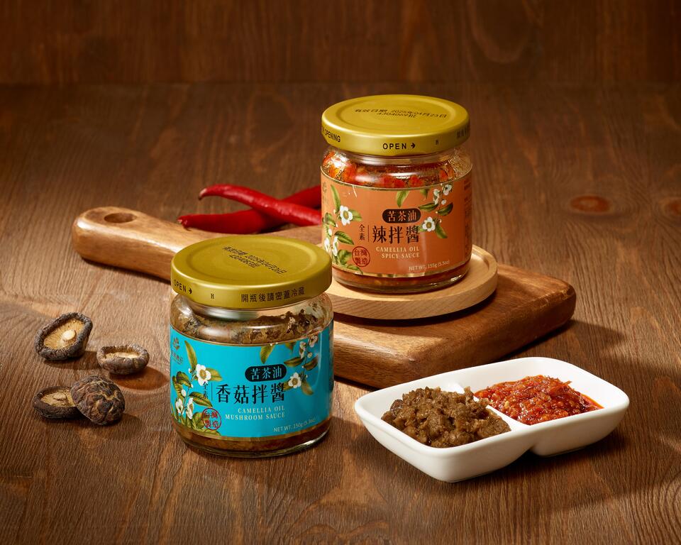 以苦茶油為基底,搭配產休區農友種植辣椒及臺中新社香菇,開發出苦茶油辣醬和苦茶油香菇醬。真材實料,方便又快速享受美味,不論是小家庭或辦公室都是必備的萬用調味料。辣醬麻而不辣的口感,讓人吃了會上癮,而香菇醬濃郁口感則適合搭配拌飯、拌麵或佐青菜食用,口感一級棒。這款禮盒不僅能滿足自己的味蕾,也是送禮自用兼備的好選擇。