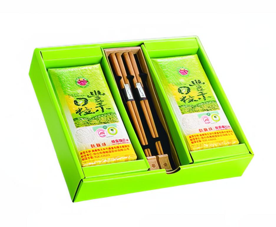 北緯 23.5° 北回歸線,赤道的最北位置所經過的太保市,日夜溫差大、日照恰當、土壤豐腴,又有嘉南大圳源源不絕的灌溉,是連年豐收的沃野。太保農民守護著稻田與太陽約定,他們以金黃色的稻作立契,不讓農藥、化肥污染這片土地,替有機太保米「香 Q 好吃」掛保證。禮盒附上檜木筷子,讓吃飯時享受檜木香味混和太保米的美味,雙重享受。
