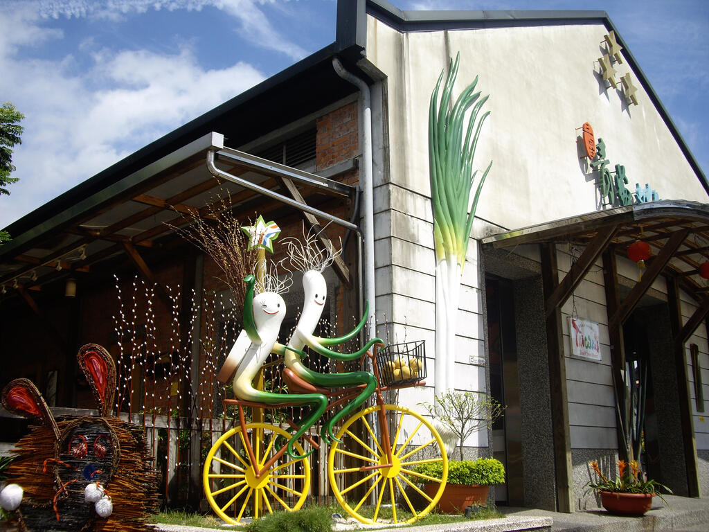 蔥明小舖的現煎蔥饀餅、蔥蝦餅、現煮魚丸、貢丸湯或是來上一杯現泡香純咖啡讓您度過一個悠閒的下午茶時光;另外,來到青蔥文化館也別忘了和門口的吉祥物合影,可愛的蔥小子騎腳踏車載著背銀柳的蒜公主,車籃裡擺放甜美多汁的上將梨,逗趣活潑的模樣也展現出三星地區的農村特色。找個機會,邀約三五好友,一同來體驗三星鄉的魅力,三星鄉的特色正如這一把頂級三星蔥,質感柔軟、口味難忘、親切懷舊,令人吃了會想念,吃不到會懷念!