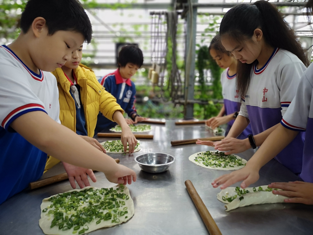 從擀麵、包料、捲成鍋牛狀,都能自己操作親子同遊DIY動手做,現煎現吃的蔥油餅最美味