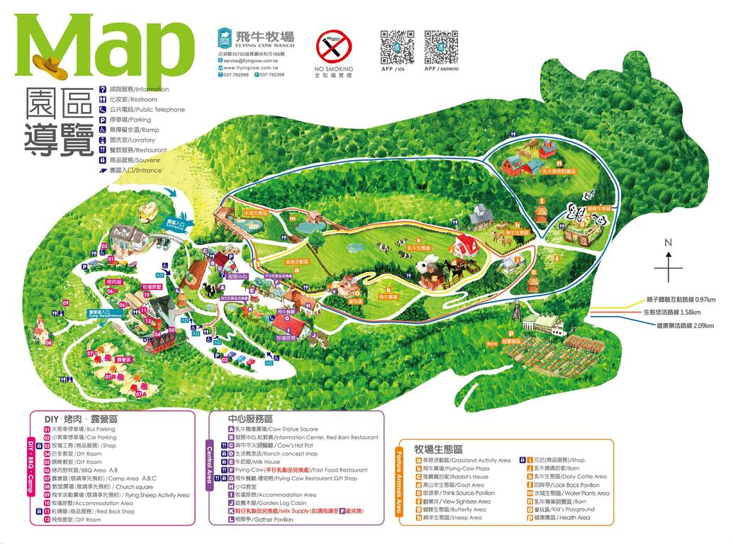 乳牛生態區、蝴蝶生態區、綿羊生態區、兔寶寶生態區、水域生態區、黑山羊生態區。