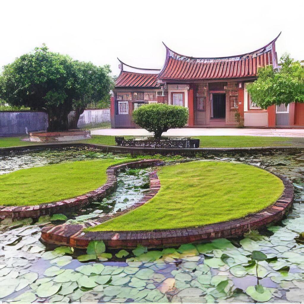 楊氏宗祠 楊氏宗祠是一坐北朝南的四合院式客家建築,地勢前低後高,屋頂覆蓋紅瓦,有燕尾之裝飾,在對稱與平衡之中,突出一種莊嚴凝峙的氛圍。牆門上鑲嵌浮雕、彩繪及交趾燒等歷史人物像,門窗則表現出客家人善用的竹節氣勢,宗祠正門前的『太極兩儀池』,是全台僅存的建築造景,呈現楊氏宗祠建築特色,也極富藝術價值。