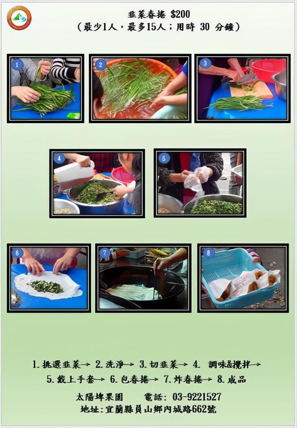 韭菜春捲 $200韭菜春捲 $200(最少1人,最多15人;用時 30 分鐘)