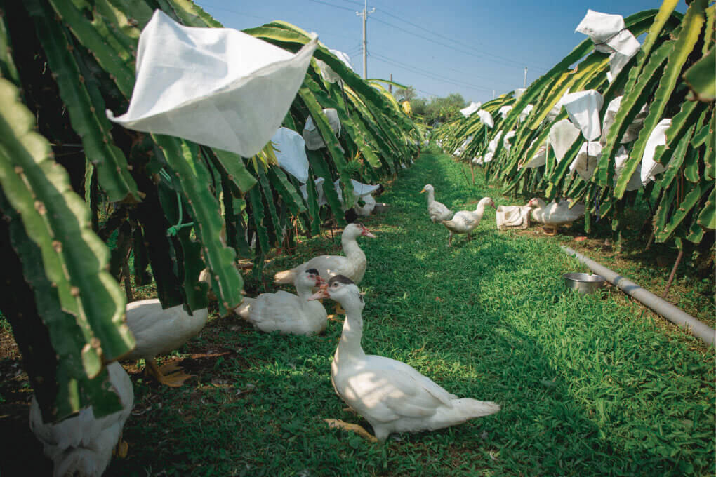 農場堅持綠色永續、生態環境友善的理念,運用草生種植方式耕作,不僅養鴨除蟲、吃蝸牛,更以大蒜、玉米稈、香菇木頭屑等自然堆肥的方式施肥,是東吳大學、田中農會聯合推薦的優選廠商。農場主人用心培育,主要以栽植火龍果(紅肉、白肉)及培育新苗為主,並改良泰國的黃龍果以及厄瓜多爾之新品種,研發不落人後。