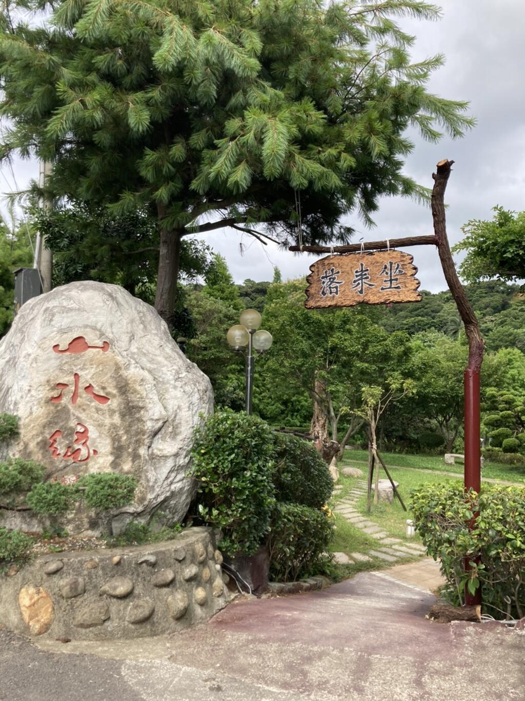 山水緣的庭園占地約800坪,庭園內花草扶疏,綠意盎然,隨著四季的變化,有著不同的美景。園區有顆百年九芎樹是鎮店之寶,其特殊之處在於他的樹幹只有半邊且中空,在如此嚴苛的生存條件下,他仍然維持旺盛的生命力,屹立不搖。