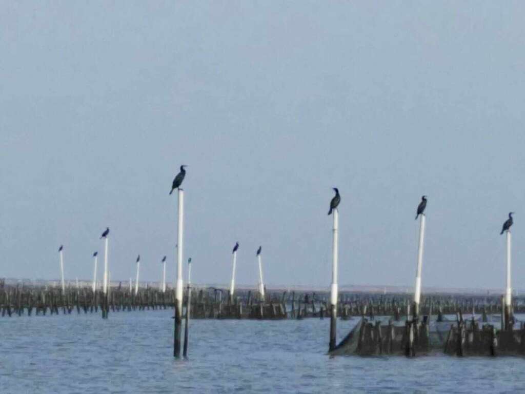 專業導覽,認識蚵棚養蚵方式、定置漁網、潟湖生態、觀賞鸕鷀;網仔寮沙洲探索生態,尋找和尚蟹、招潮蟹。